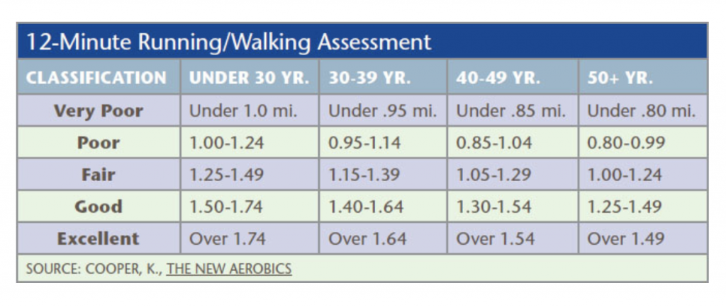 The 12-minute Running/Walking Assessment will